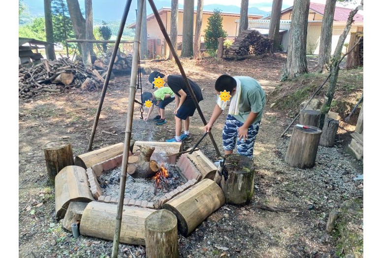 夏休み🍉山の上のお家🌳 2022年8月3日 最終更新日時 : 2022年9月2日 kagayakikids 山の上のお家 小さい頃からの仲良しの二人(^^) 涼しい場所なので僕も来れました(^^) 蚊よけに火を焚いてくださってました 後日の遊びの為の準備の竹を運んでくれてます 何度来てもこのブランココーナーは取り合いに・・ 木陰は本当に涼しく手作り遊具で自然満喫! 夏休みには週1行かさせてもらいます。この暑い暑い夏 子供達には本当に有難い避暑地です 神坂の川 暑い夏は、冷たい水に足をつけるだけでも体がひんやり・・ 大きい子たちは服が濡れないようちゃんと計算しながら遊んでいます。