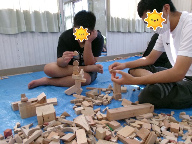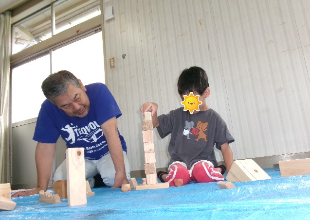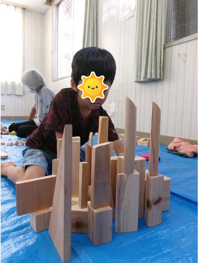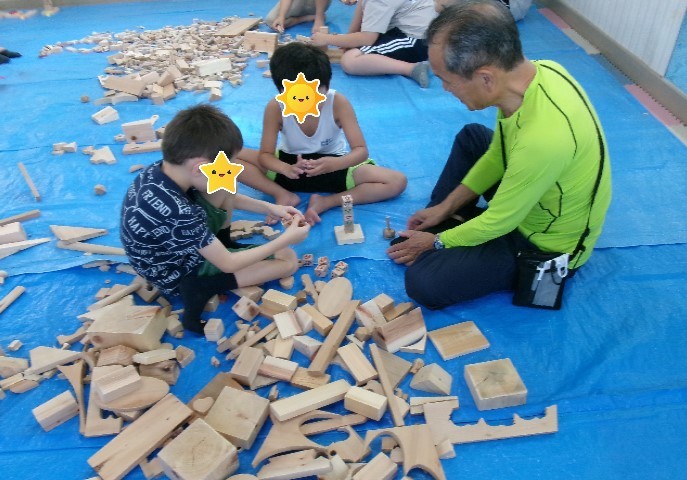 長期休みにはいつも来て下さる付知の牧野先生。今年もたくさんの木片(こっぱ)を持ってきて下さり、子ども達は木の香りの漂う部屋で木片を好きなだけ使って思いっきり積み重ねたり並べたり・・ 今年も子ども達の作品展を計画しています。ぜひお越しください!